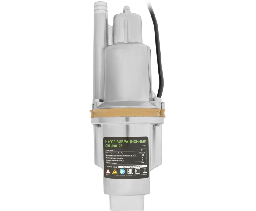 Насос вибрационный СИБРТЕХ Вибрационный насос СВН300-25, верхний забор, 300 Вт, напор 75 м, 1200 л/ч, кабель 25 м//