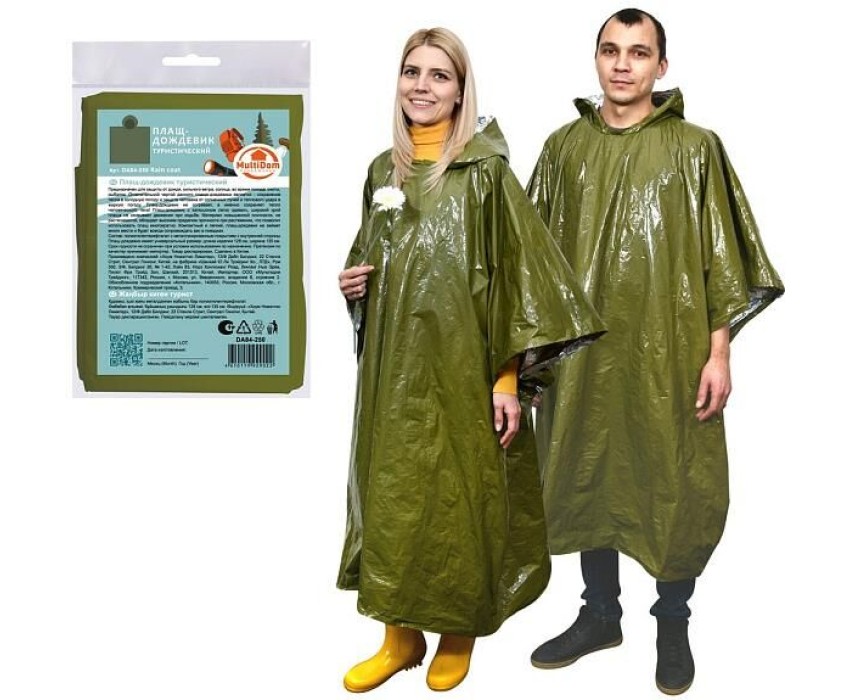MULTIDOM Плащ-дождевик туристический. Размер 122х123 см. DA84-250