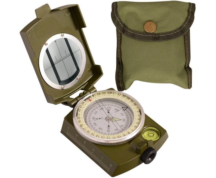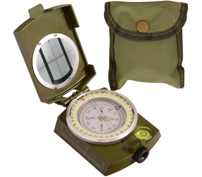 Компас пригодится вам в походе, путешествии, на охоте, рыбалке и на спортивном ориентировании. Компас водонепроницаем, его можно использовать в ночное время, при недостаточном освещении стрелка на север и лимб со шкалой загораются флуоресцентным светом. Плавающий магнитный диск компаса имеет 360 градусную шкалу. Корпус полностью заполнен жидкостью для того, чтобы придать магнитной стрелке устойчивость и должную точность показаний. Наличие пузырькового уровня, крышка для прицела с прицельной сеткой обеспечивают точное считывание расстояний. Светящаяся магнитная стрелка и циферблат, масштабная раскладная линейка, линия прицеливания, лупа для просмотра, крепление для штатива, окуляр визир для чтения делают компас многофункциональным и уникальным снаряжением. На обратной стороне компаса отображается таблица преобразования углов в градусах, градиентах и процентах.