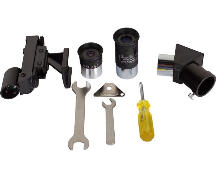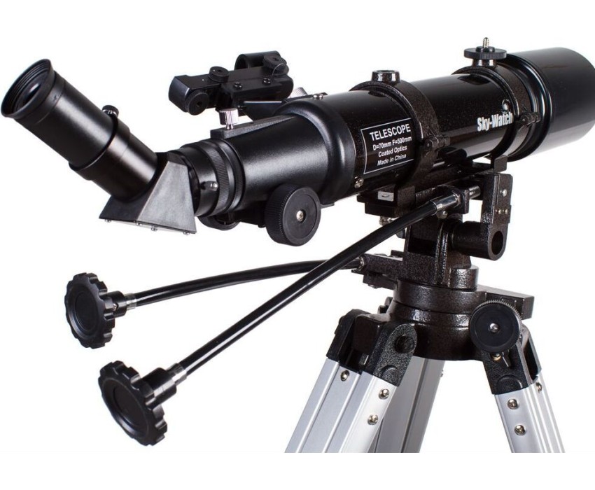 Тип телескопа рефрактор. Оптическая схема ахромат. Покрытие оптики полное многослойное. Диаметр объектива (апертура), мм 70. Фокусное расстояние, мм 500. Максимальное полезное увеличение, крат 140. Светосила (относительное отверстие) f/7. Окуляры в комплекте 25 мм, 10 мм. Посадочный диаметр окуляров, дюймов 1,25. Искатель с красной точкой. Тренога алюминиевая. Лоток для аксессуаров есть. Тип управления телескопом ручной. Тип монтировки азимутальная, AZ3. Механизмы тонких движений по обеим осям. Дополнительно есть стандартная Т-резьба (М42) для монтажа зеркальной фотокамеры. Габариты трубы, мм длина 380. Вес трубы, кг 1,25. Уровень пользователя для начинающих, для детей. Предмет наблюдения планеты Солнечной системы.
