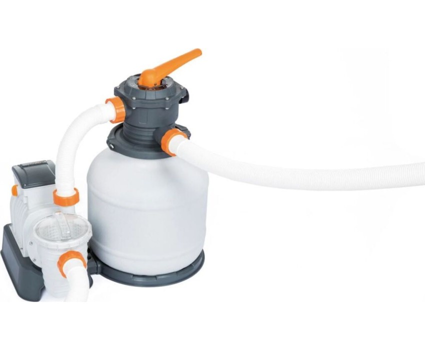 BEST WAY Фильтр-насос для бассейнов песочный 7751 л/ч, 58499 Песчаный фильтр-насос подходит для каркасных бассейнов. При правильной эксплуатации не требует особого обслуживания, одной партии песка хватает как минимум на сезон. Оснащён 6-функциональным клапаном для управления фильтром: фильтрация, обратная промывка, ополаскивание, циркуляция, слив, закрытие. Фильтр-насос снабжён встроенным таймером для лёгкого программирования автоматических рабочих циклов и легко читаемым манометром. Сетчатая корзина предварительного фильтра — это дополнительный элемент, который фильтрует более крупные частицы, такие как листья, волосы и грязь, что увеличивает срок службы. В комплект фильтра входит дозатор ChemConnect™ для регулировки уровня хлора и эффективного поддержания воды. Характеристики Подходит для бассейнов объёмом до 50 000 литров, до 732 см Производительность фильтр-насоса: 7571 л/ч Производительность системы: 7900 л/ч Мощность: 280 Вт Ёмкость для песка: 20 кг Тип песка Кварцевый песок (ф