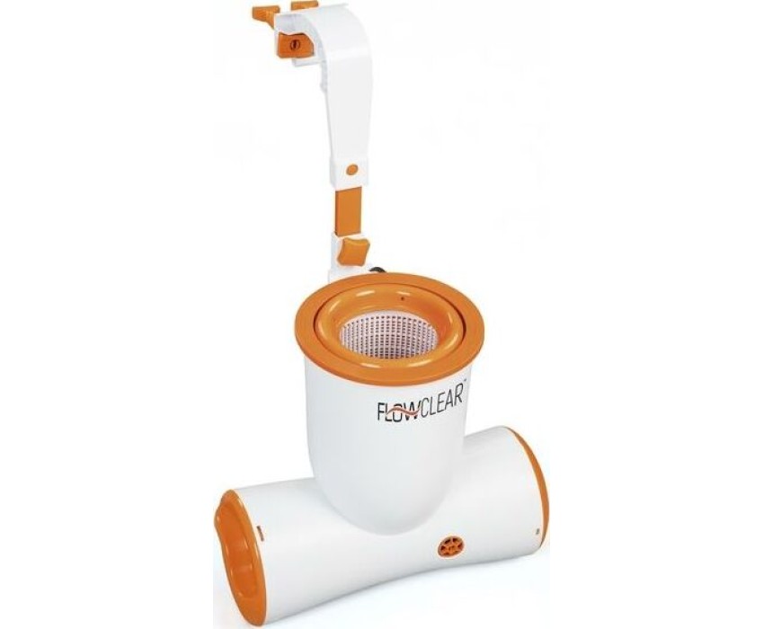 Подвесной фильтр-насос с мусороуловителем 3974 л/час для домашних надувных и каркасных бассейнов. С его помощью очищается верхний слой воды, который наиболее подвержен попаданию мусора, грязи или насекомых. Работает фильтр-насос от напряжения в 220 В, имея небольшую потребляемую мощность 73 Вт.