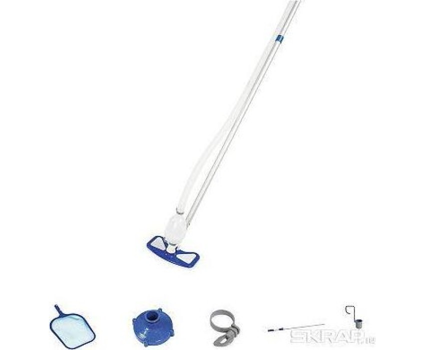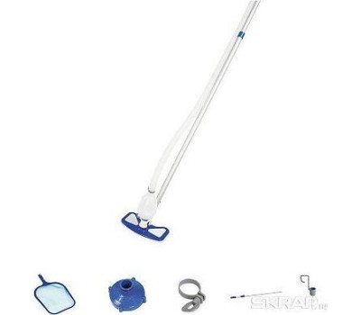В комплект входит сетка для скиммера и вакуумный очиститель для бассейна со съемной многоразовой корзиной для листьев. И сетку для скиммера, и вакуумный очиститель можно подсоединить к регулируемой алюминиевой ручке длиной 110"/ 2,79 м и шлангу длиной 24,5'/ 7,5 м, которые идеально подходят для бассейнов большого диаметра. Один конец шланга необходимо подсоединить к вашему насосу для фильтрации бассейна, а другой конец - к вакуумному очистителю бассейна. Вакуумный очиститель идет в комплекте с креплениями для разнообразных насосов для фильтрации, и используется для очистки водорослей и мелкого мусора со стенок и поверхности бассейна. В комплект входит скиммер для бассейна, который подсоединяется к насосу для фильтрации или крепится на стенке бассейна, и автоматически улавливает листья, насекомых и мелкий мусор. Подходит для насосов для фильт