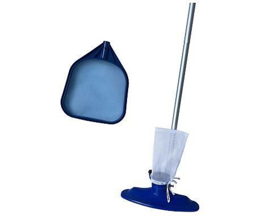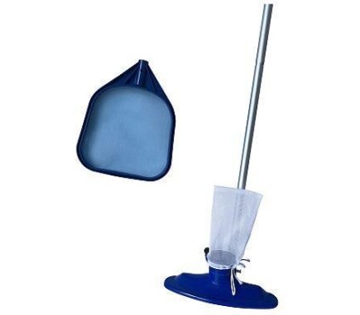 Размер телескопической ручки: 249 см Материал: алюминий, пластмасса АБС Для бассейнов размером до 360-450 см Комплектация: телескопическая трубка, сачок, вакуумная насадка Количество предметов: 3 Назначение: для чистки листьев и мусора с поверхности бассейна