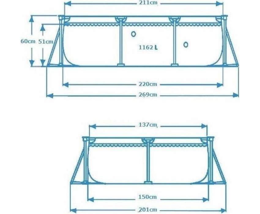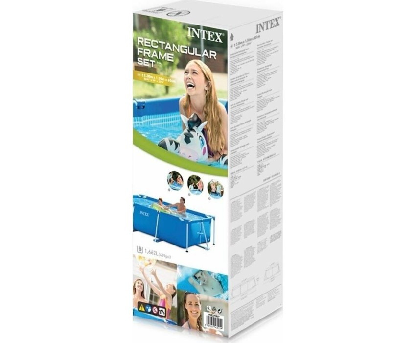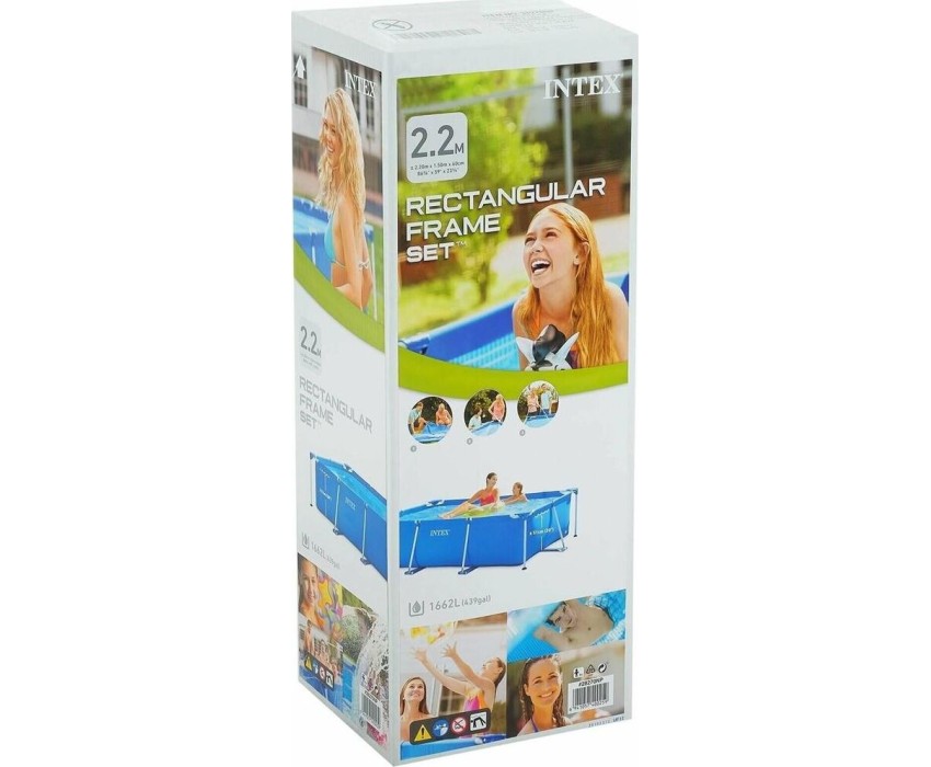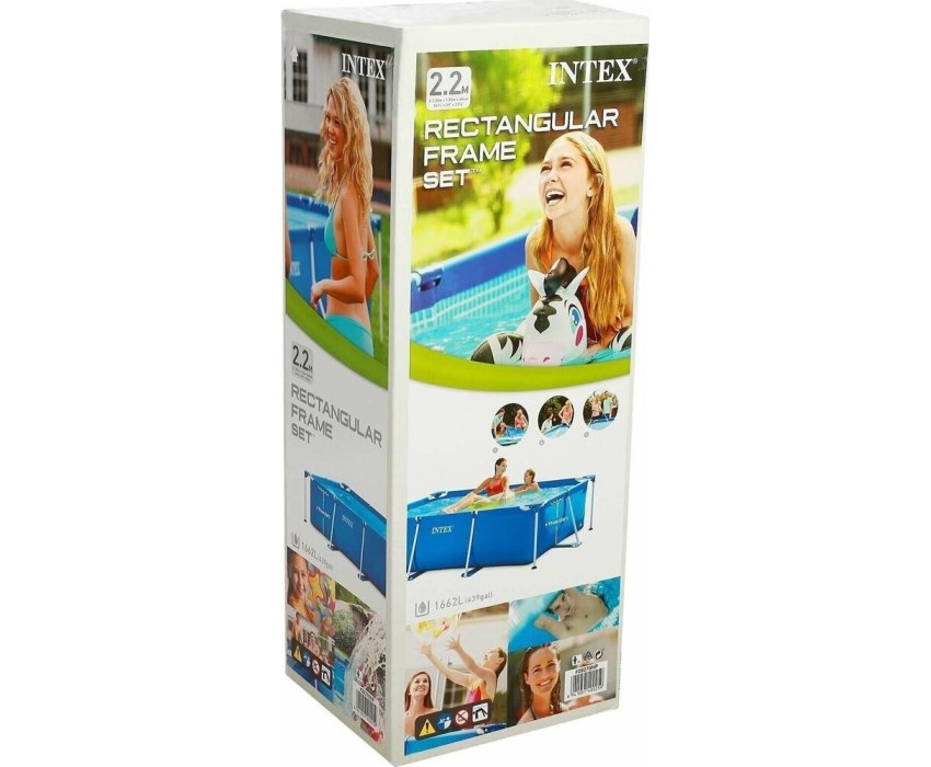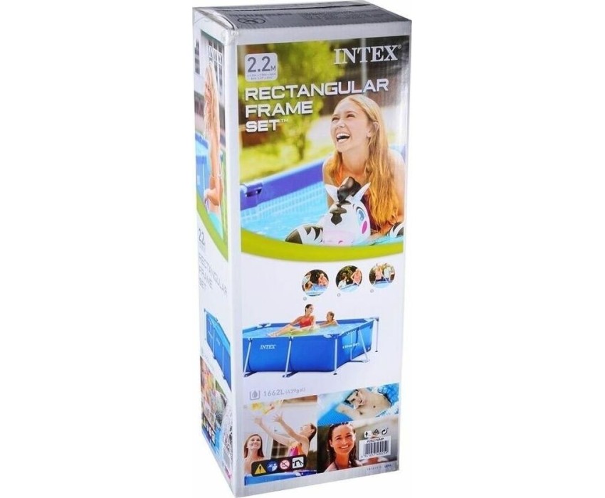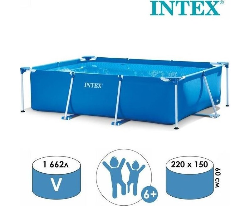 Прямоугольный каркасный бассейн INTEX — это простая конструкция, с которой семейный досуг на природе будет весёлым и приятным. Жарким летним днём он станет комфортной зоной отдыха, где детки будут радостно плескаться вместе с родителями. Размер: 220х150х60 см.