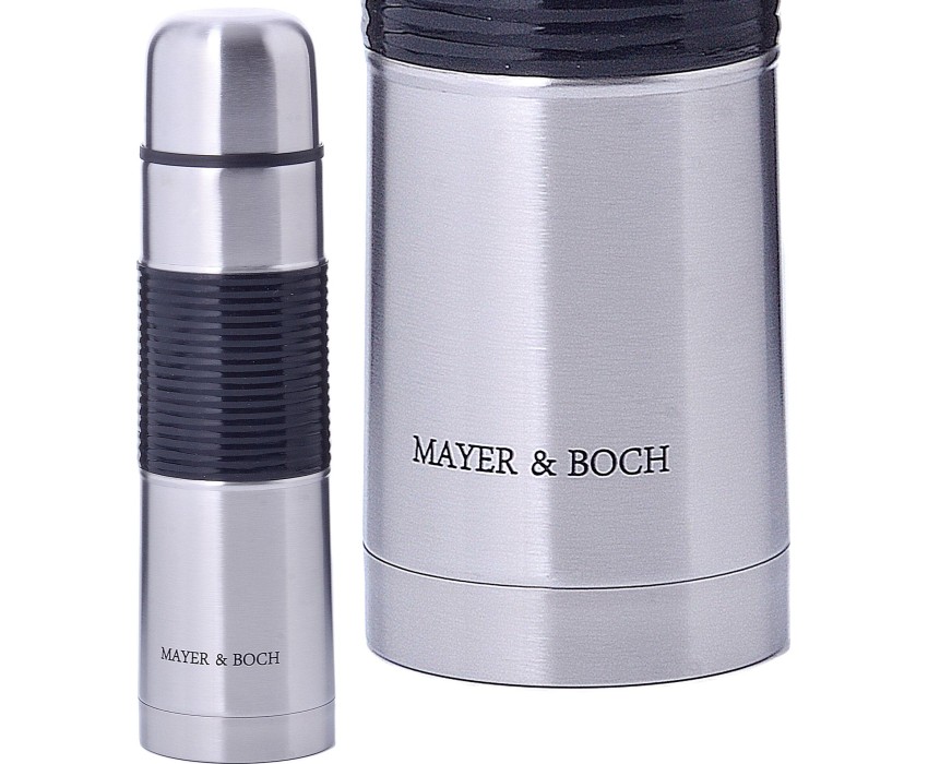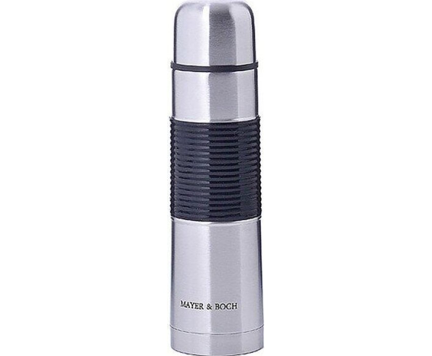 Термос МВ (х24). Корпус: нержавеющая сталь. Внутренняя колба: нержавеющая сталь. Крышка: полипропилен. Внешняя вставка: силикон. Цвет: серебристый, черный. Диаметр горлышка: 4,5 см. Объем: 750 мл. Размер упаковки: 8,5 х 8,5 х 30 см. Вес: 490 г. Страна-изготовитель: Китай. Упаковка: коробка.