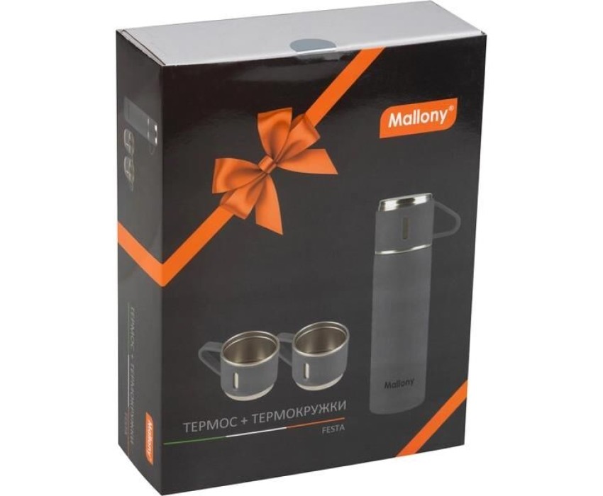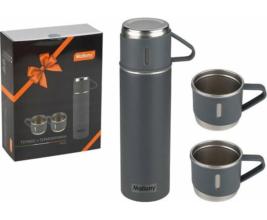 Набор: термос + ТЕРМОкружки MALLONY FESTA, 0,5 л (3 кружки), серый (106052)