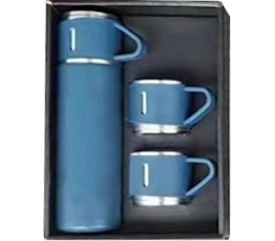 Набор термос + 3 термокружки из нержавеющей стали. Благодаря специальному покрытию его удобно и приятно держать в руке. Упакован в подарочную коробку. Объем термоса: 500 мл Материал: нержавеющая сталь (304), резина, пластмасса Цвет: синий