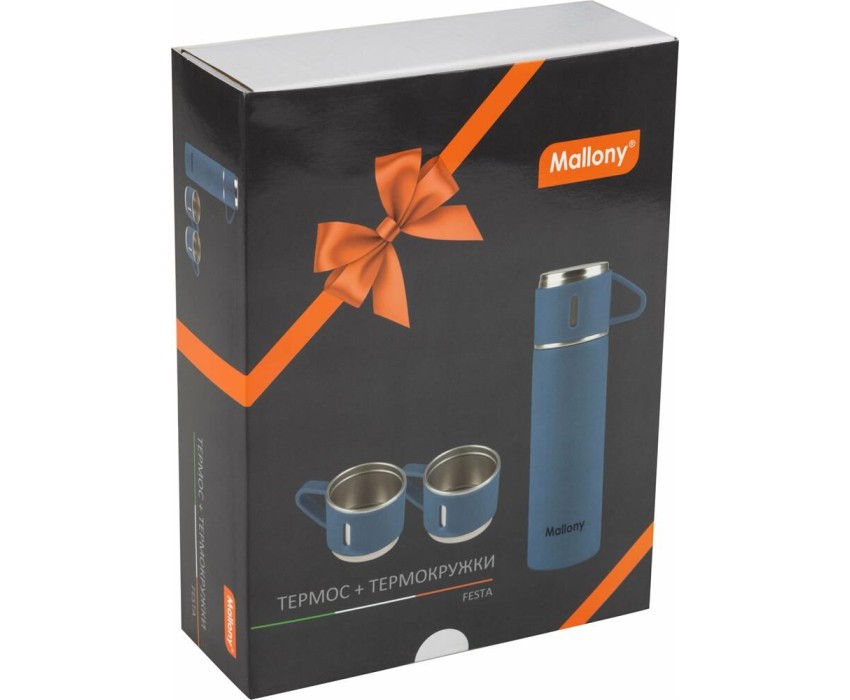 Набор: термос + ТЕРМОкружки MALLONY FESTA, 0,5 л (3 кружки), синий (106055)
