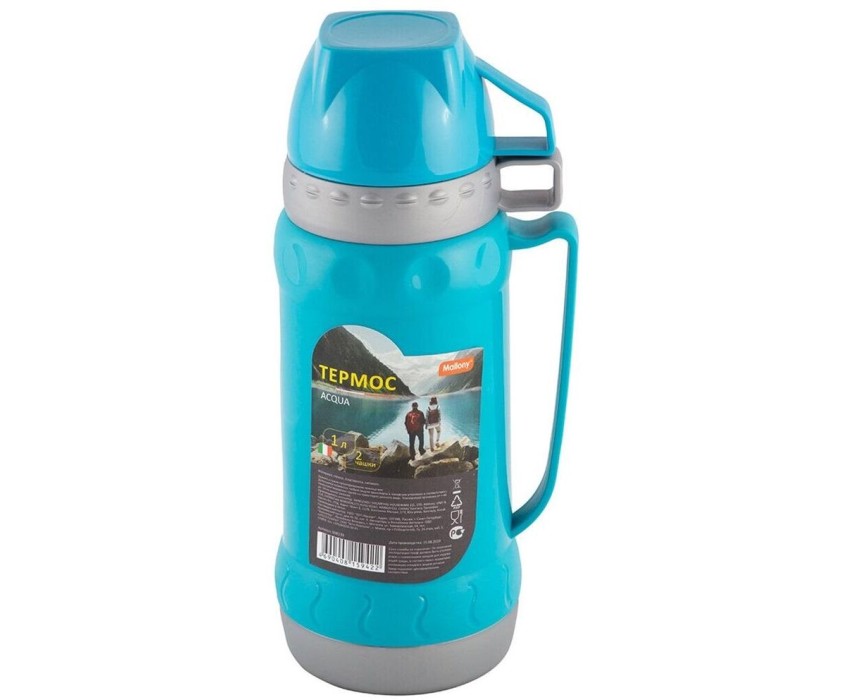 Термос Mallony предназначен для сохранения температуры Вашего напитка. Подходит как для горячих, так и для холодных напитков. Корпус изготовлен из пластмассы, колба из стекла. Герметичная конструкция препятствует проливанию и подтеканию жидкости. Благодаря легкому весу, компактный термос удобно брать с собой. В комплекте 2 чашки, что позволит поделиться напитком со спутником. Объем 1л. Размер: 12х30см.