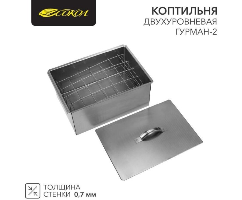 СОКОЛ Коптильня Гурман-2 400х280х180мм, двухуровневая, в гофрокартонной коробке
