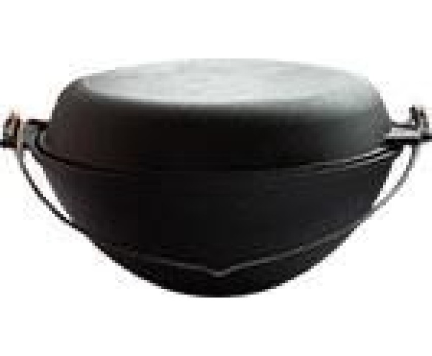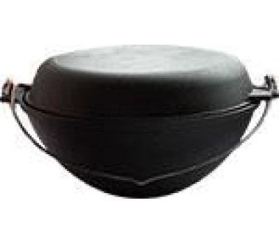 Котел с дужкой с чугунной крышкой-сковородой Объем: 5 литров Крышка: Чугунная Ручка: Дужка Дно внутреннее: Полусфера Дно внешнее: Плоское Диаметр дна: 11,5 см Тип плиты: для всех типов, кроме индукционных Особенности: повышенная долговечность и износостойкость; утолщенное дно до 6 мм; природное антипригарное покрытие; высокая теплопроводность и эргономичность; удобство в использовании; идеальное распределение тепла по всей поверхности посуды, длительное сохранение тепла, вследствие чего получаем эффект томления; возможность использования минимального количества масла и соли; подходит для всех типов плит и печей