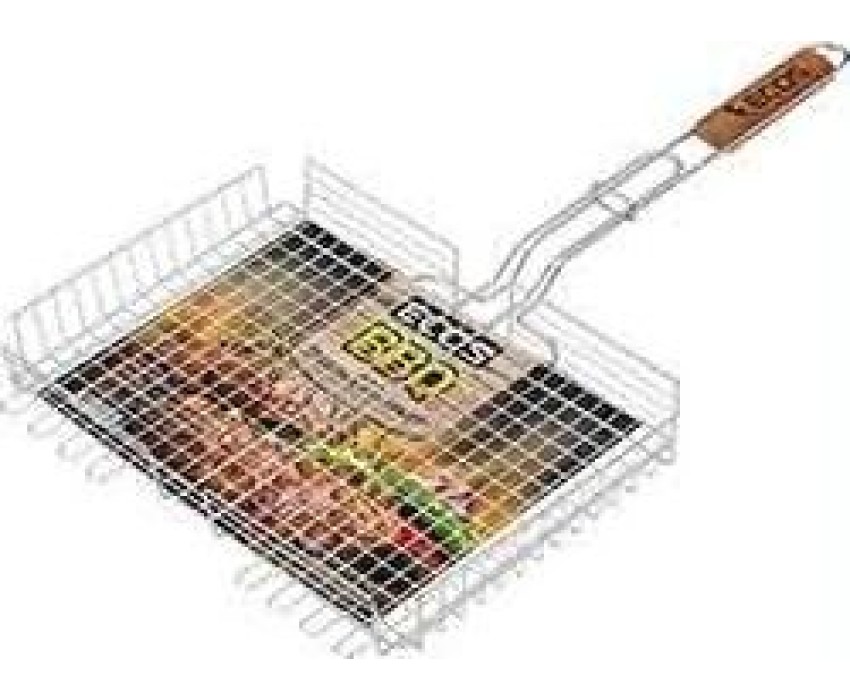 размер: 22x22x5см, общая длина: 58см Толщина прутьев: 3.5мм, 2.0мм, 1.5мм. Материал: хромированная сталь, Глубокая решетка для барбекю поможет легко приготовить вкуснейшие блюда на открытом огне. Удобная деревянная ручка не нагревается при использовании и не скользит в руках. Благодаря тому, что решетка переворачивает все содержимое одним движением, значительно экономится время при готовке. Удобный зажим прочно закрепит продукты на решетке, будь то мясо, овощи или рыба.