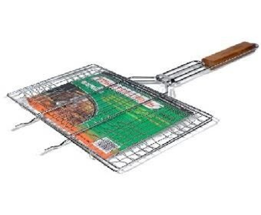 Двойная решетка для гриля L=59 см с деревянной ручкой- для мяса, упоры для мангала Коробка: 66*35,5*35 см, вес 19 кг, 12 кор/пал