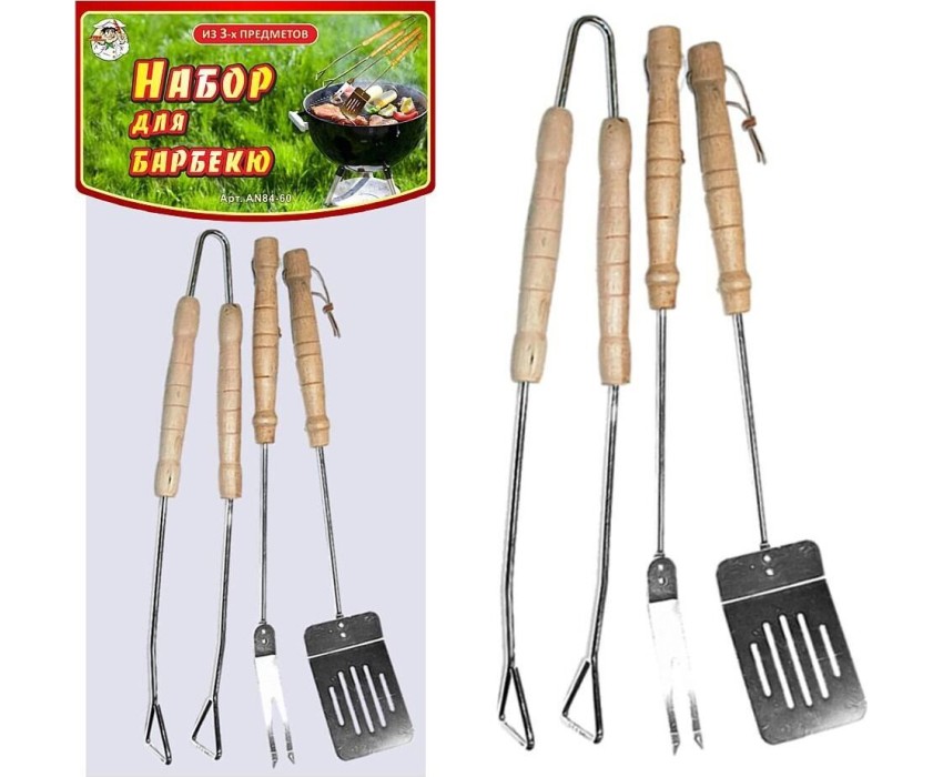 Н-р д/барбекю "Отдых" 3пр. AN84-60 Материал: Металл (Сталь хромированная), Дерево