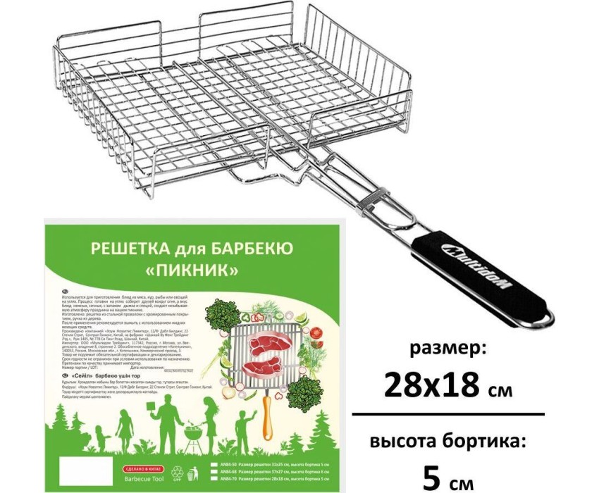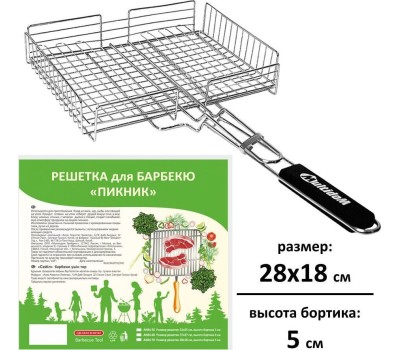 Решетка д/барбекю "Пикник" 28x18x5 см AN84-70 Материал: Металл (Сталь хромированная), Дерево
