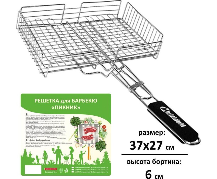 Решетка д/барбекю "Пикник" 37x27x6 см AN84-68 Материал: Металл (Сталь хромированная), Дерево