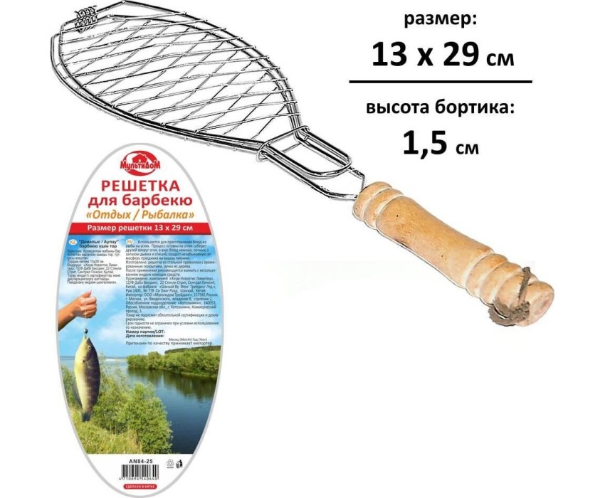 Используется для приготовления блюд из мяса, кур, рыбы или овощей на углях. Процесс готовки на углях соберет друзей вокруг огня, а вкус блюд нежных, сочных, с запахом дымка и специй, создаст незабываемую атмосферу праздника на вашем пикнике. Изготовлено: решетка из стальной хромированной проволоки, ручка из дерева. После применения рекомендуется вымыть с использованием жидких моющих средств. Размер решетки 13х29 см, высота бортика 2 см.