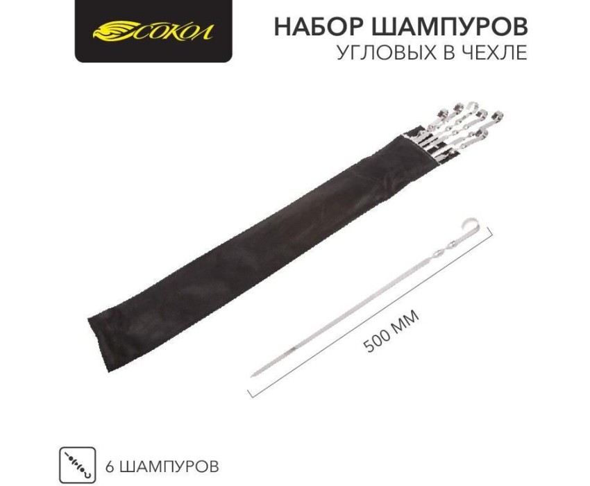 СОКОЛ Набор шампуров угловых 6х500мм, в чехле