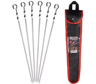 Размер шампура: 450х10мм; Количество шампуров: 6шт. С витком; Материал: нержавеющая сталь 0,7мм; Инд. упаковка: чехол из спанбода + цветной вкладыш;
