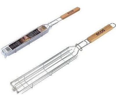 Размер: 25 х 4 х 3,5 см (размер рабочей части), общая длина: 49см Толщина прутьев: 2.8мм, 1.8мм Материалы: решетка - хромированная сталь, деревянная ручка Решетка для барбекю поможет легко приготовить вкуснейшие блюда на открытом огне. Удобная деревянная ручка не нагревается при использовании и не скользит в руках. Благодаря тому, что решетка переворачивает все содержимое одним движением, значительно экономится время при готовке. Удобный зажим прочно закрепит продукты на решетке, будь то мясо, овощи или рыба.