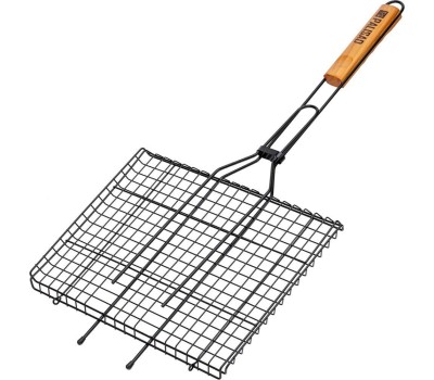 Решетка гриль Palisad Camping 69556 размером 260 х 350 мм, с антипригарным покрытием, используется для качественной равномерной жарки пищи с двух сторон на мангале. Пригодится любителям отдыха на открытом воздухе для приготовления мяса, рыбы и овощей.Преимущества Долговечность решетки обеспечивает жаропрочная сталь высокого качества, из которой она выполнена. Антипригарное покрытие предотвращает прилипание мяса к решетке. Увеличенные опорные стержни обеспечивают возможность использования всей рабочей площади решетки. Толстое кольцо-фиксатор предотвращает случайное раскрытие решетки и обеспечивает безопасное переворачивание блюд. Эргономичная рукоятка выполнена из древесины, поэтому приятна на ощупь и удобна в эксплуатации.