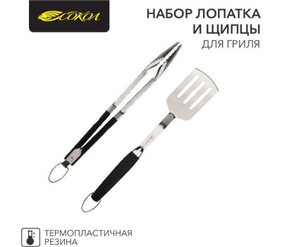 СОКОЛ Набор лопатка и щипцы для гриля Комфорт, термопластичная рукоятка