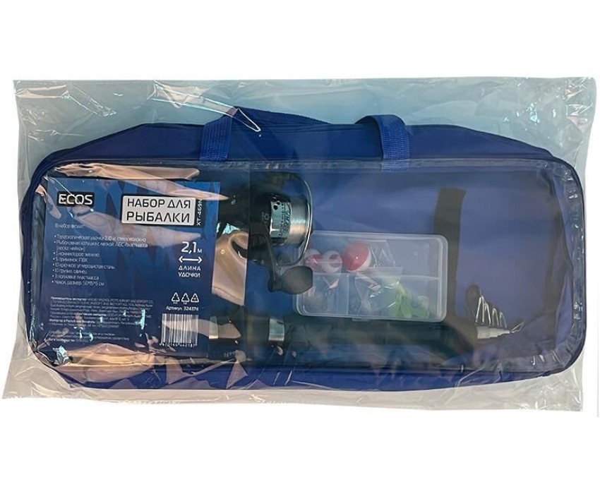 В набор входят: Телескопическая удочка 2.10 м : стекловолокно Рыболовная катушка с леской: АБС-пластмасса (леска: нейлон) 5 коннекторов: железо 5 приманок: ПВХ 10 крючков: углеродистая сталь 10 грузил: свинец 2 поплавка: пластмасса Чехол в комплекте, размер: 50 см*15 см*6 см.