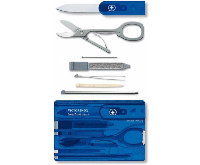VICTORINOX Швейцарская карта SwissCard Classic (0.7122.T2) синий полупрозрачный коробка подарочная
