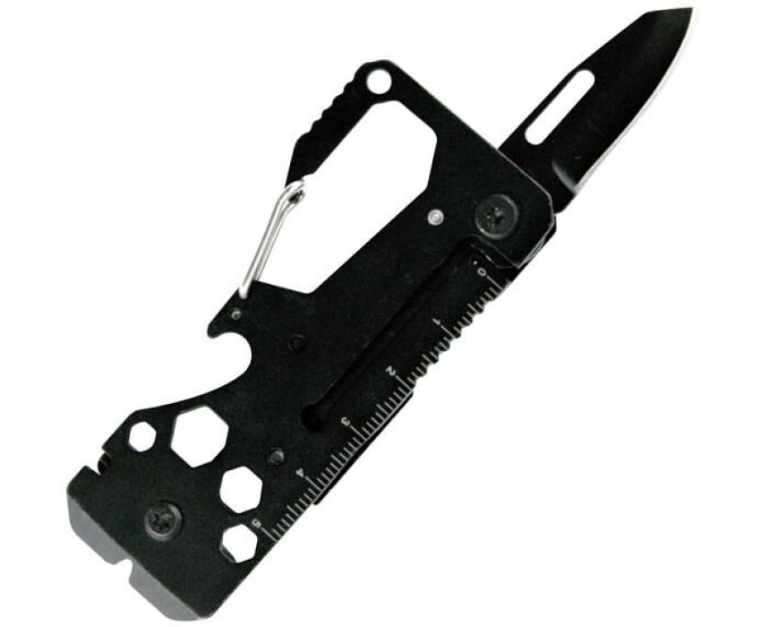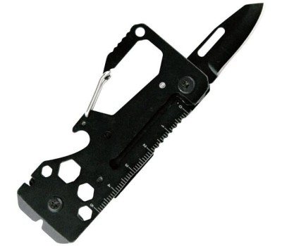 Мультитул представляет собой универсальный инструмент, который сочетает в себе массу полезных функций для выполнения различных задач. Такой инструмент обязательно пригодится в машине, гараже, в походе, кемпинге, на охоте или рыбалке, а также на дачном участке или пикнике. Он компактен и не займет много места в вашем туристическом снаряжении или багаже. Включает в себя 13 функций: 1. нож 2. открывалка для бутылок 3. крестовая отвертка малая 4. крестовая отвертка средняя 5. плоская отвертка малая 6. мини-монтировка 7. шестигранная розетка 4 мм 8. шестигранная розетка 5 мм 9. шестигранная розетка 6 мм 10. шестигранная розетка 8 мм 11. ключ для спиц велосипеда 12. линейка (5 см.) 13. карабин Изготовлено: коррозионностойкая (нержавеющая) сталь, алюминий, эмалевое покрытие. Размер: 22,4х4х0,7 см.