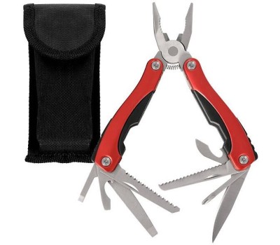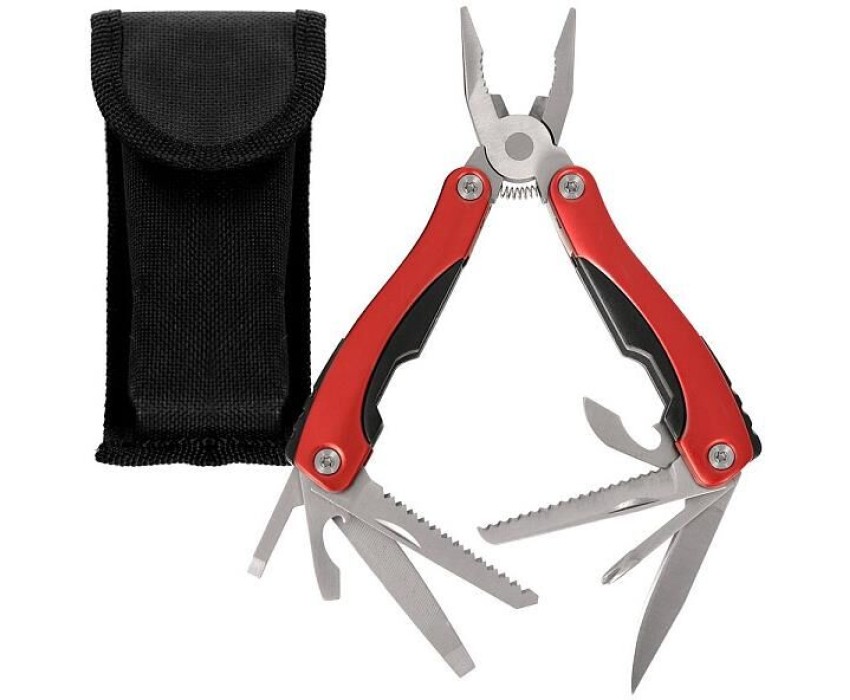 Мультитул представляет собой универсальный инструмент, который сочетает в себе массу полезных функций для выполнения различных задач. Такой инструмент обязательно пригодится в машине, гараже, в походе, кемпинге, на охоте или рыбалке, а также на дачном участке или пикнике. Он компактен и не займет много места в вашем туристическом снаряжении или багаже. В комплекте имеется удобный чехол для хранения и переноски инструмента. Включает в себя 14 функций: 1. плоскогубцы игольчатые 2. плоскогубцы внутренние 3. кусачки для проволоки 4. зубчатая рыбочистка, 5. антистеплер 6. отвертка крестовая 7. консервный нож 8. нож 9. напильник 10. отвертка плоская 5,8 мм 11. открывалка 12. отвертка плоская 5,3 мм 13. маленькая шлицевая отвертка 4,5 мм 14. пила Изготовлено: коррозионностойкая (нержавеющая) сталь, алюминий, эмалевое покрытие, пластмасса (полипропилен). Чехол из синтетического материала (состав: 100% нейлон). Размер: в сложенном виде 10х4,5х2 см, в разложенном виде 16х10,5х2 см.