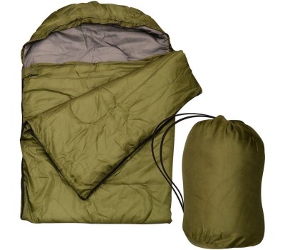 Спальный мешок предназначен для использования в поездках на природу, охоту, рыбалку, в походах, кемпинге, в осенне-весенний период года, температура комфорта от -5 до +15 градусов. Спальный мешок выполнен из прочного полиэстера, имеет хорошие теплоизоляционные свойства за счет хлопкового утеплителя. Мешок оснащен теплым воротником и глубоким капюшоном со шнуровкой. Мешок не занимает много места, он скручивается в валик и помещается в чехол со шнурком-затяжкой, который обеспечивает его чистоту. Состав: наполнитель из хлопчатобумажного волокна, чехол из синтетического материала (полиэстер). Размер: 220х80 см.
