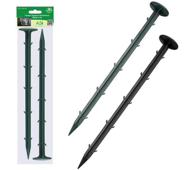 Гвоздь садовый крепежный надежно закрепляет и удерживает садовую мембрану, укрывной материал, геотекстиль, пленку, зимние укрытия и прочее за счет расположенных на нем шипов. Отличается удобством и простотой использования. Возможно многократное применение. Способ применения: - расстелите материал на открытый грунт; - закрепите края и стыки с помощью крепежных гвоздей. Изготовлено из пластмассы (полипропилен). Размер: общая длина 25см, диаметр шляпки 4см.