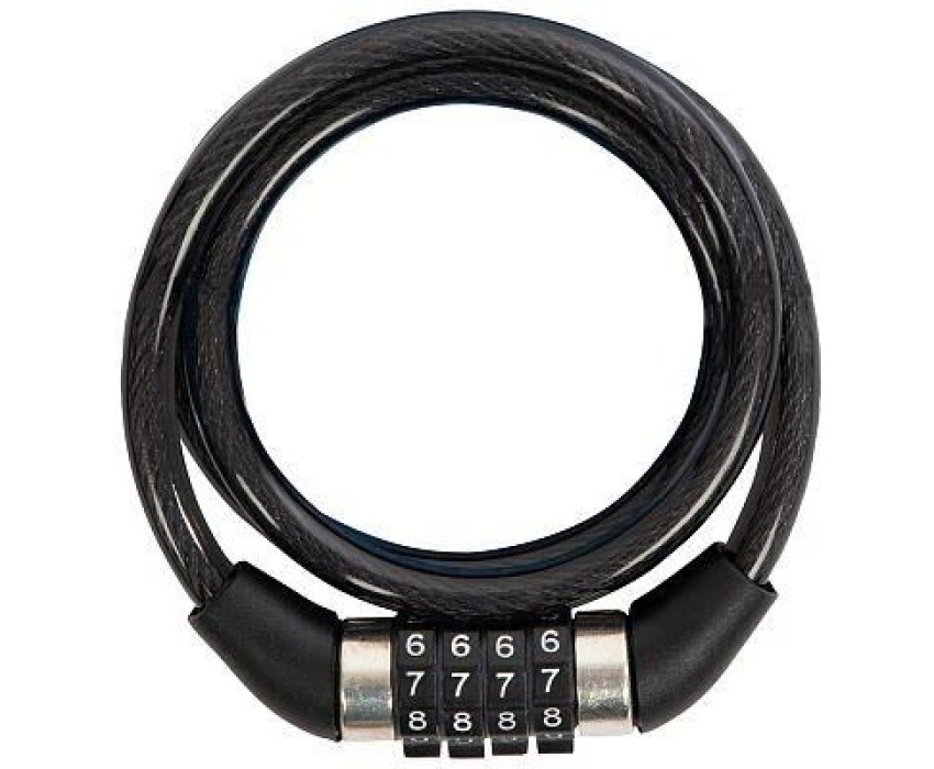 Диаметр троса: 8 мм Длина троса 1200 мм Материал: трос - сталь, пвх-покрытие, цинк (кодовый цилиндр), пластмасса Сменная кодовая комбинация. Упаковка: картонная подложка Для защиты велосипедов, мотоциклов, колясок; запирания ворот, хозяйственных и бытовы