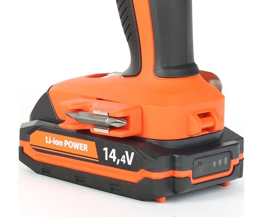 Напряжение аккумулятора, В 14.4. Тип аккумулятора Li-ion. Емкость аккумулятора, А*ч 1,5. Макс. диаметр сверления (металл/бетон/дерево), мм 6/6/18. Количество регулировок крутящего момента 21+1. Диаметр патрона, мм 10. Тип двигателя щеточный. Мягкий крутящий момент, Нм 38. Жесткий крутящий момент, Нм 47. Количество скоростей 2. 1 скорость, об/мин 0-400. 2 скорость, об/мин 0-1400.