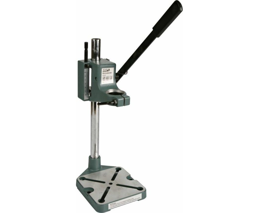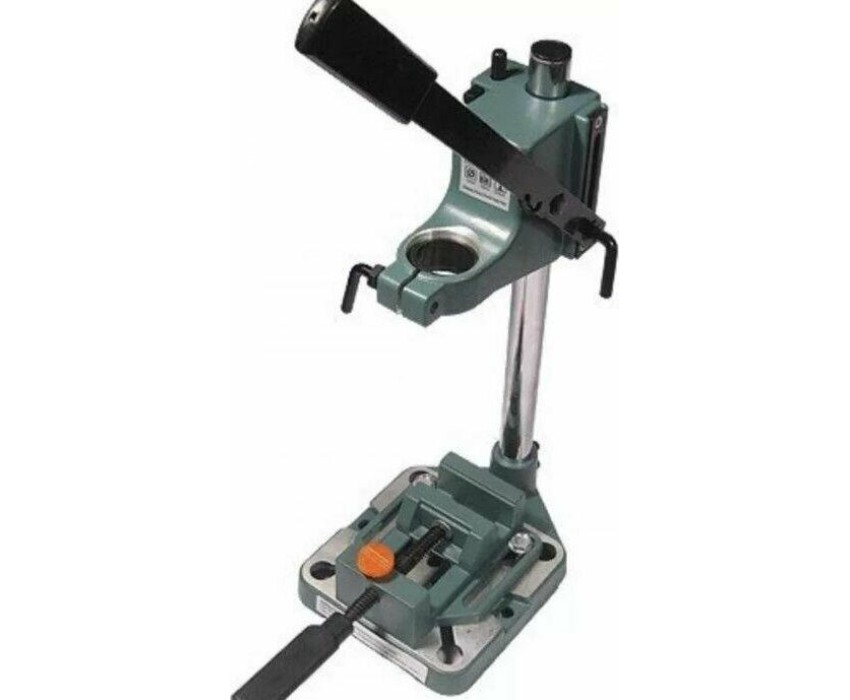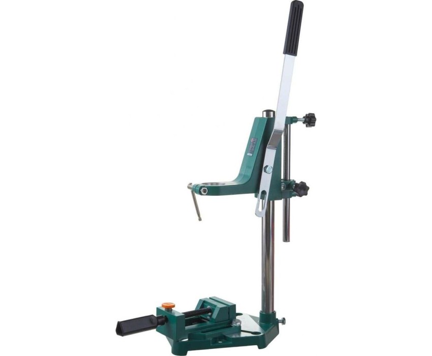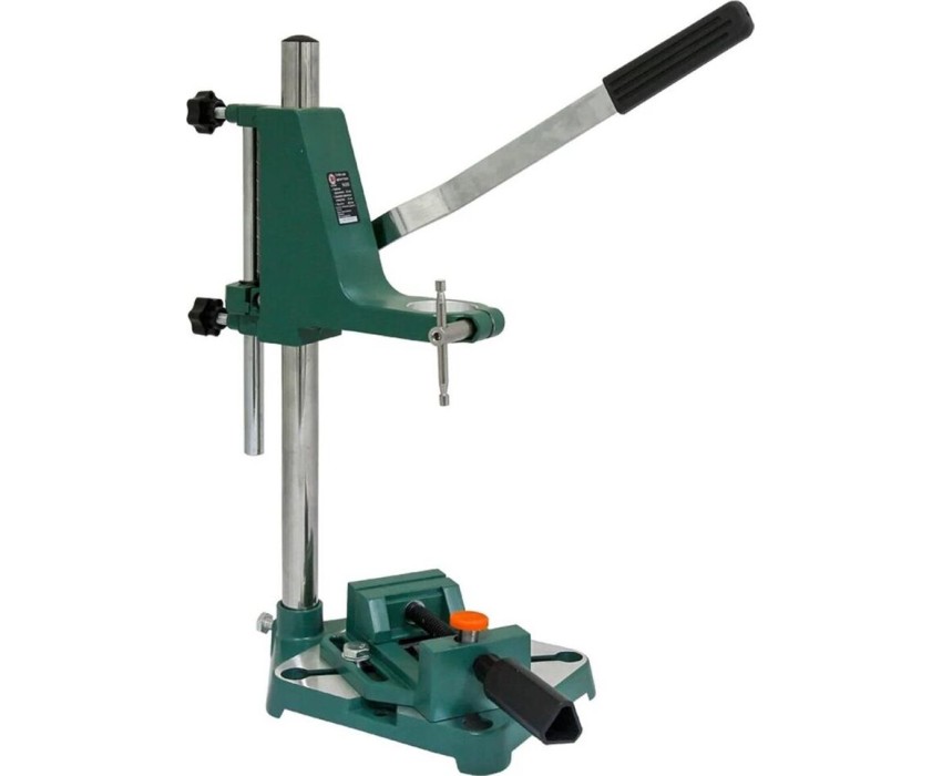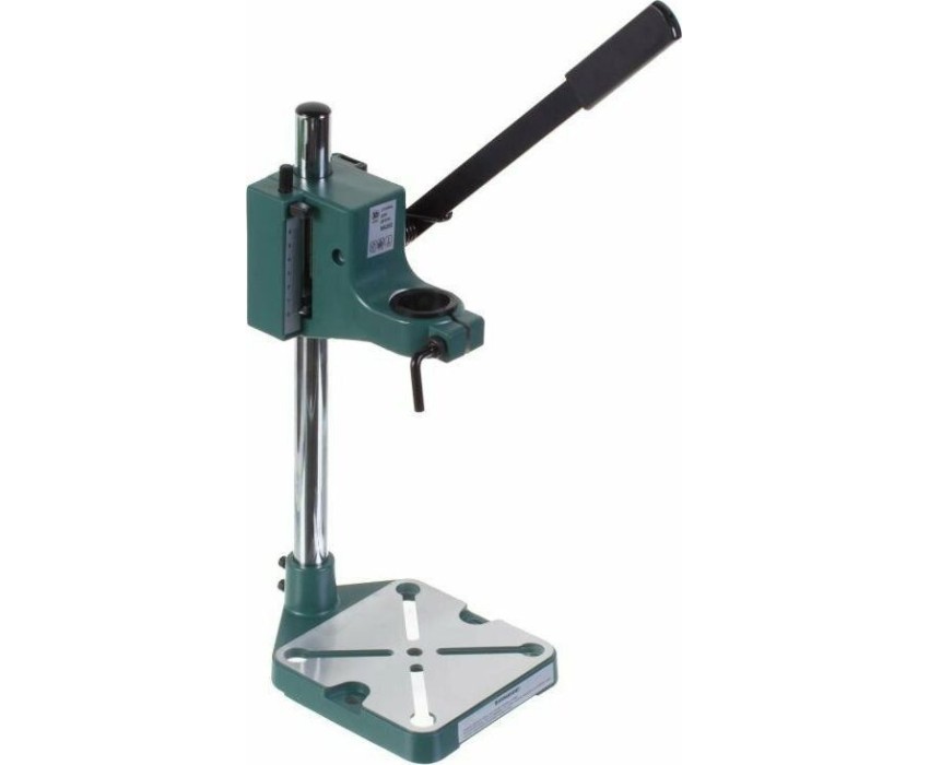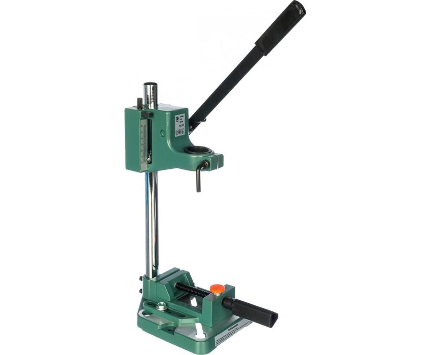 Стойка 96203 Калибр 00000000571 используется совместно с дрелями. Она надежно фиксируется на поверхности стола при помощи болтов. С помощью стойки производят вертикальное закрепление инструмента. Можно осуществлять сверление без удерживания дрели в руках. В комплекте предусмотрены тиски, с помощью которых фиксируют различные заготовки. Дополнительные характеристики: Высота - 400 мм; Материал - силумин; Размер рабочего стола - 150х150 мм; Диаметр зажимного отверстия - 43 мм; Глубина сверление - 60 мм. Параметры упакованного товара Единица товара: Штука Вес, кг: 2,52 Длина, мм: 414 Ширина, мм: 180 Высота, мм: 111