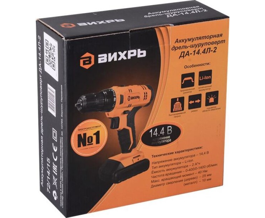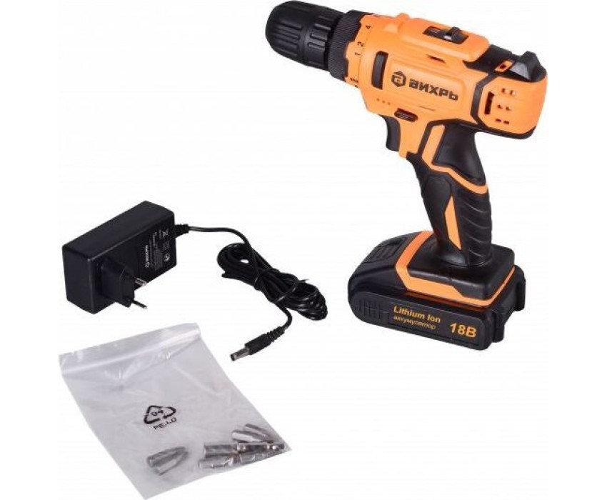 Аккумуляторная дрель-шуруповерт ВИХРЬ ДА-18Л-2