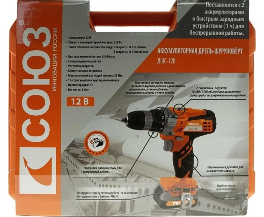 Дрель СОЮЗ ДШС-12К Аккумуляторная дрель