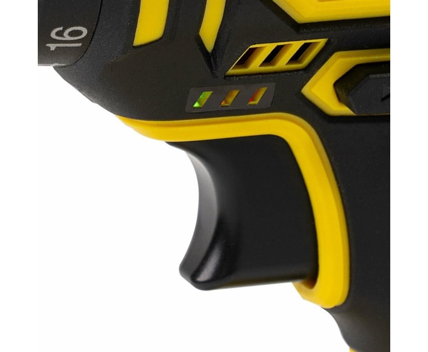 Тип аккумулятора Li-Ion 2 шт. Напряжение: 16 В. Емкость аккумулятора: 2 А·ч. Время зарядки аккумулятора: 3-4 часа. Число оборотов на холостом ходу: 0-400/0-1450 об/мин. Число ступеней крутящего момента: 18+1. Максимальный крутящий момент: 28 / 19 Нм. Патрон двухмуфтовый быстрозажимной. Диаметр патрона: 0,8-10 мм. Максимальный диаметр сверления: дерево - 18, сталь - 12 мм..