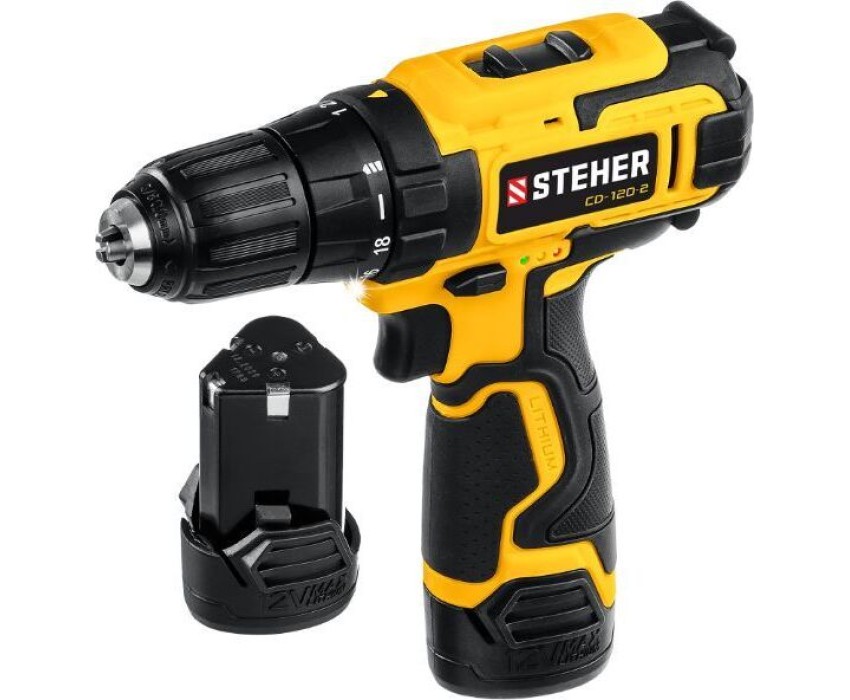Дрель STEHER CD-120-2 12В, 2 АКБ (2Ач), в кейсе, дрель-шуруповерт