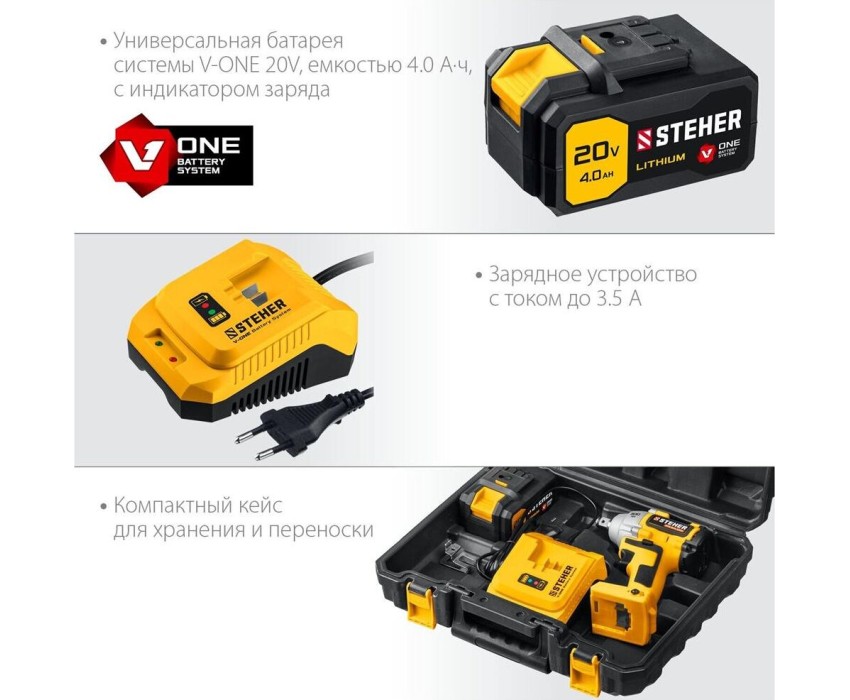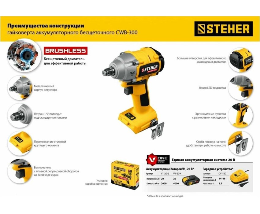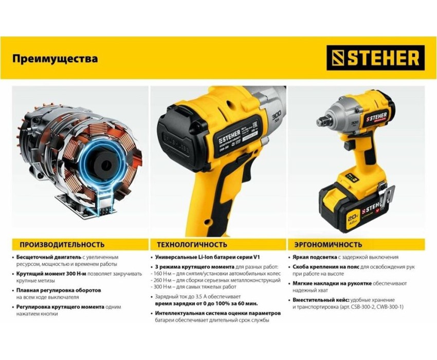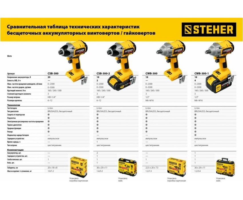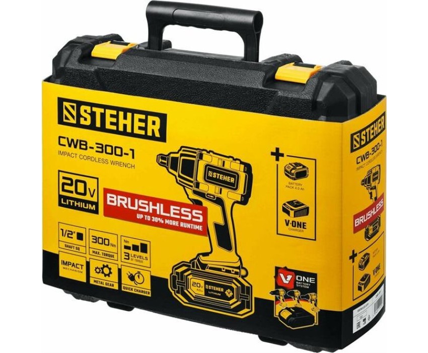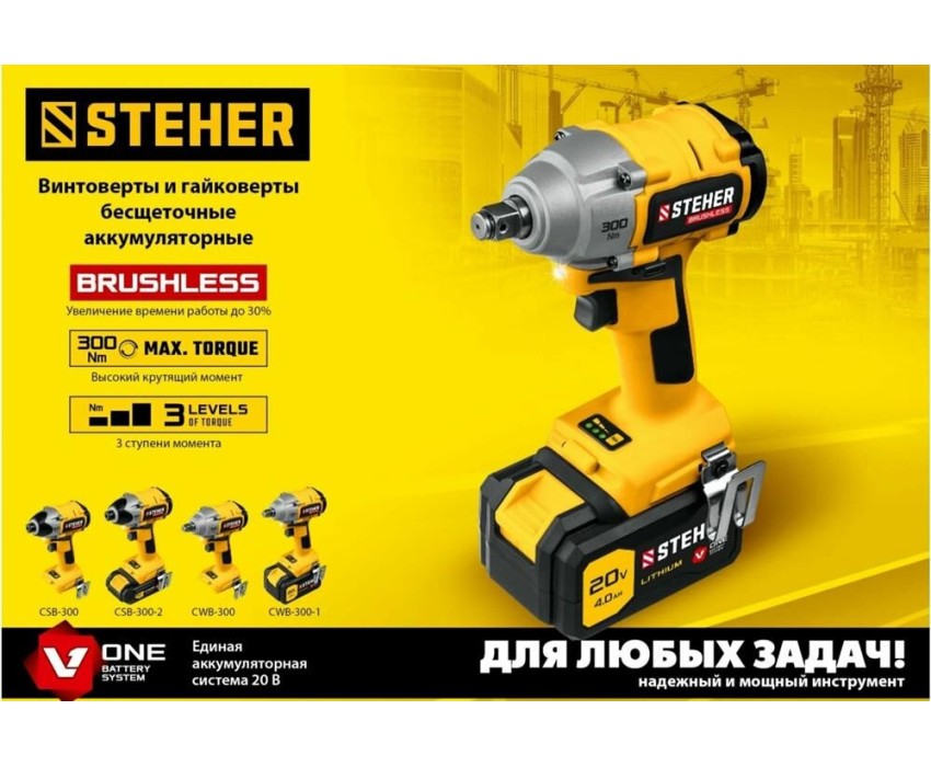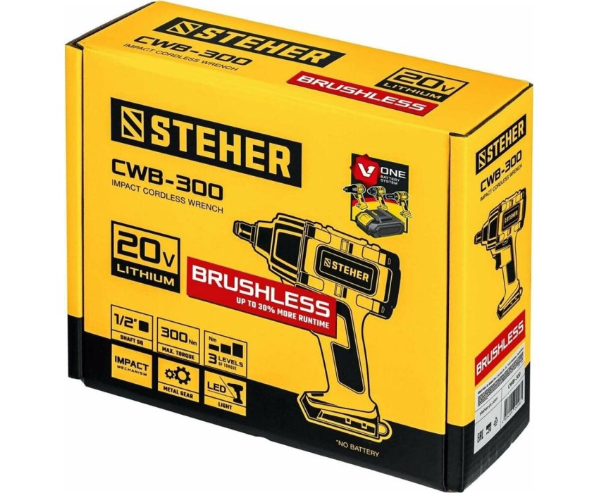 Винтоверт STEHER CWB-300 20В бесщёточный гайковерт, без АКБ, в коробке
