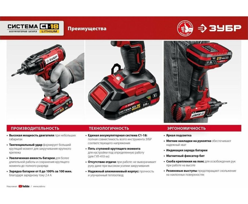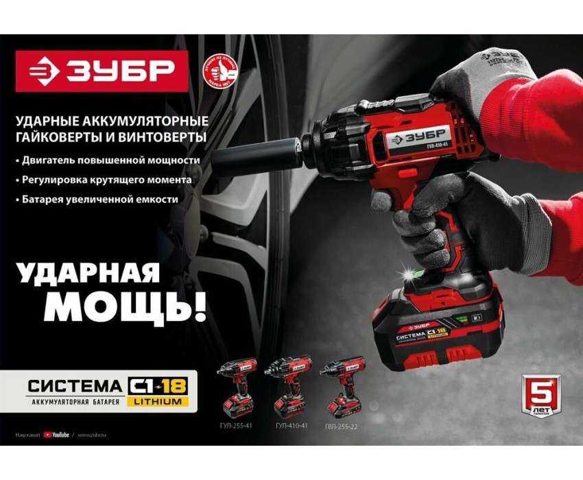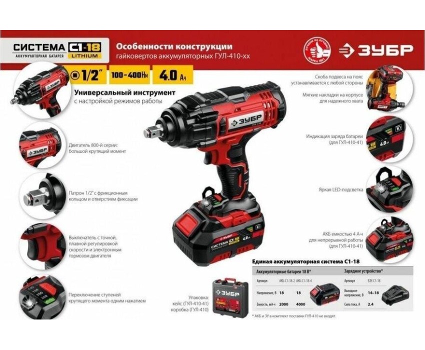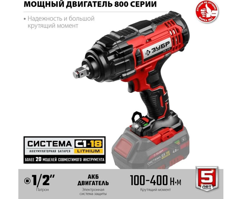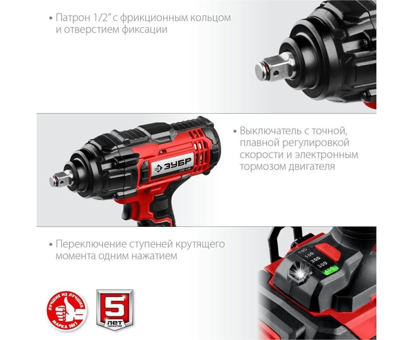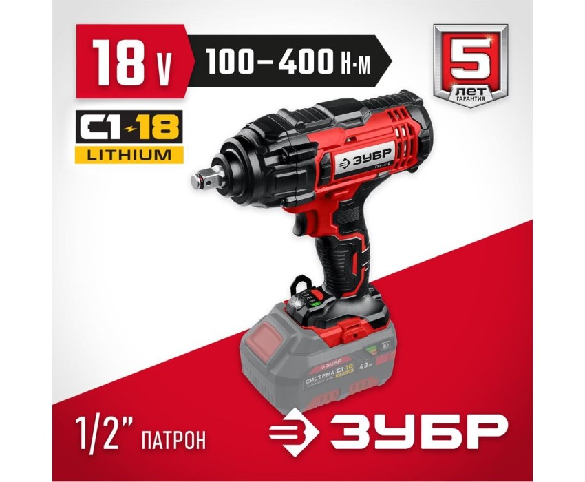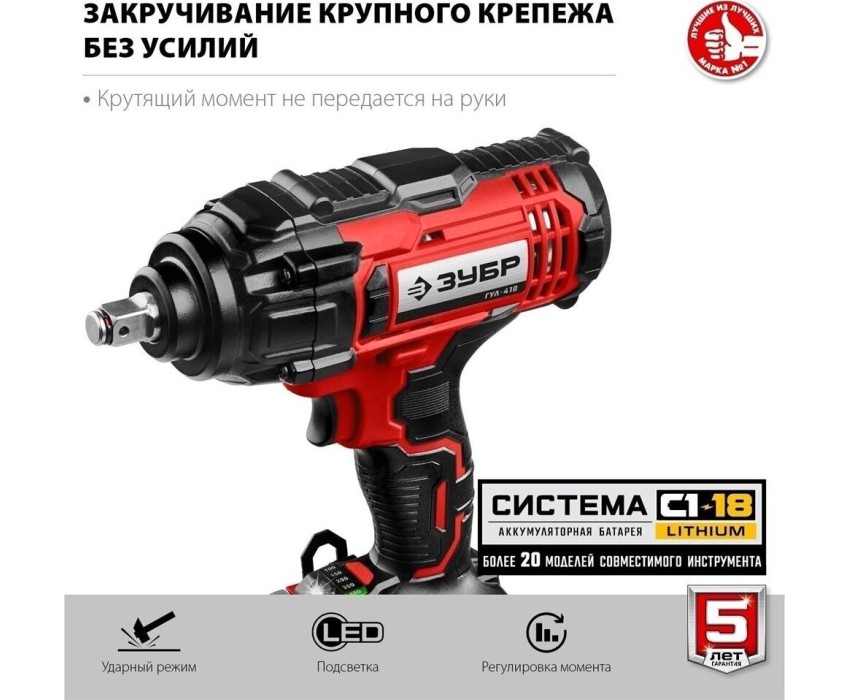 Гайковерт ЗУБР ГУЛ-410 18В, без АКБ