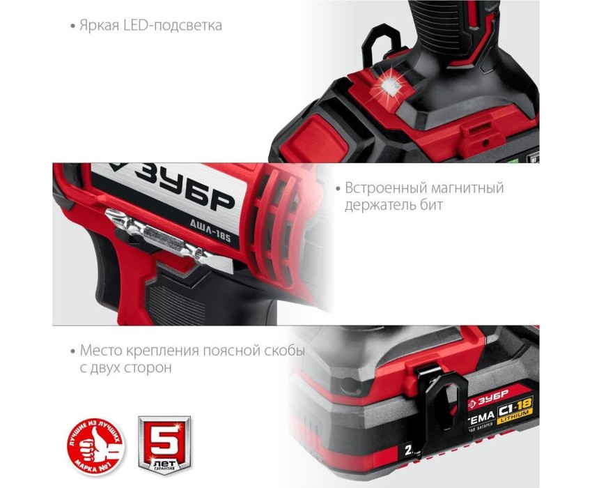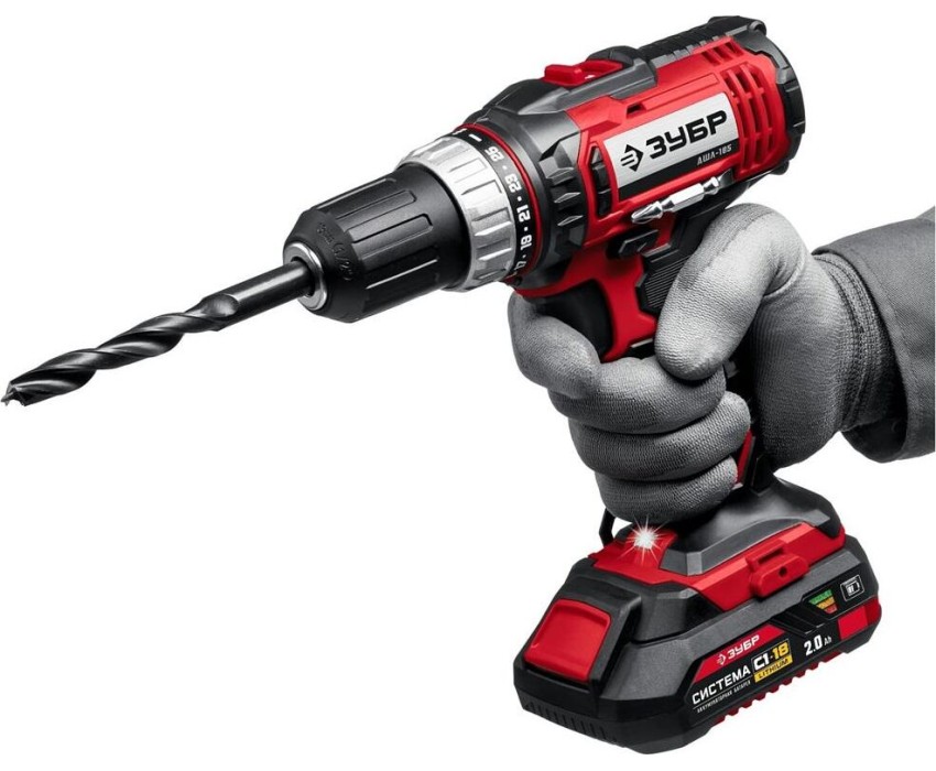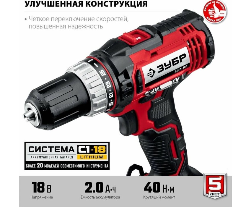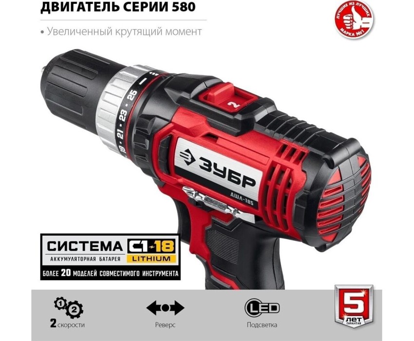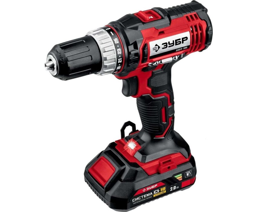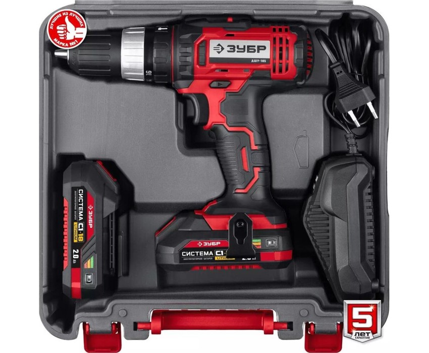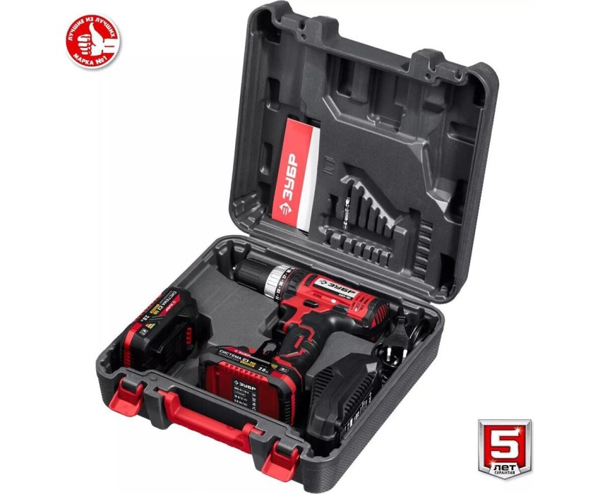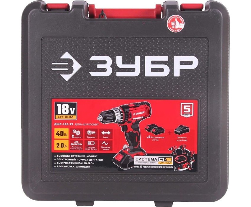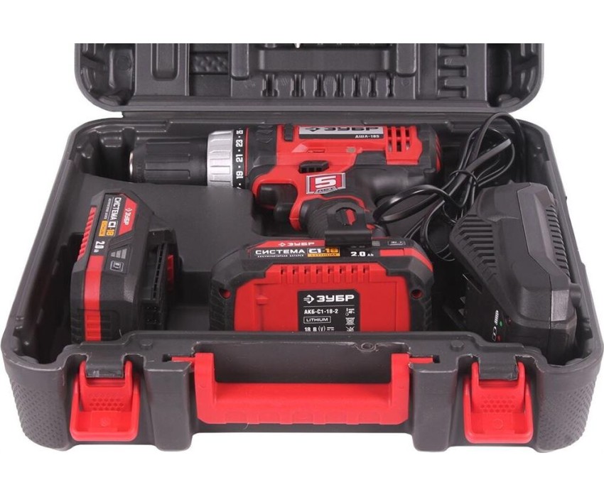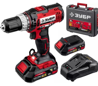 Дрель аккумуляторная ЗУБР ДШЛ-185-22 18В, 2 АКБ (2Ач), в кейсе, дрель-шуруповерт.
