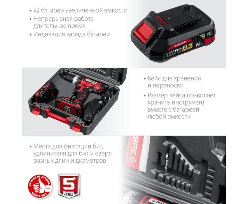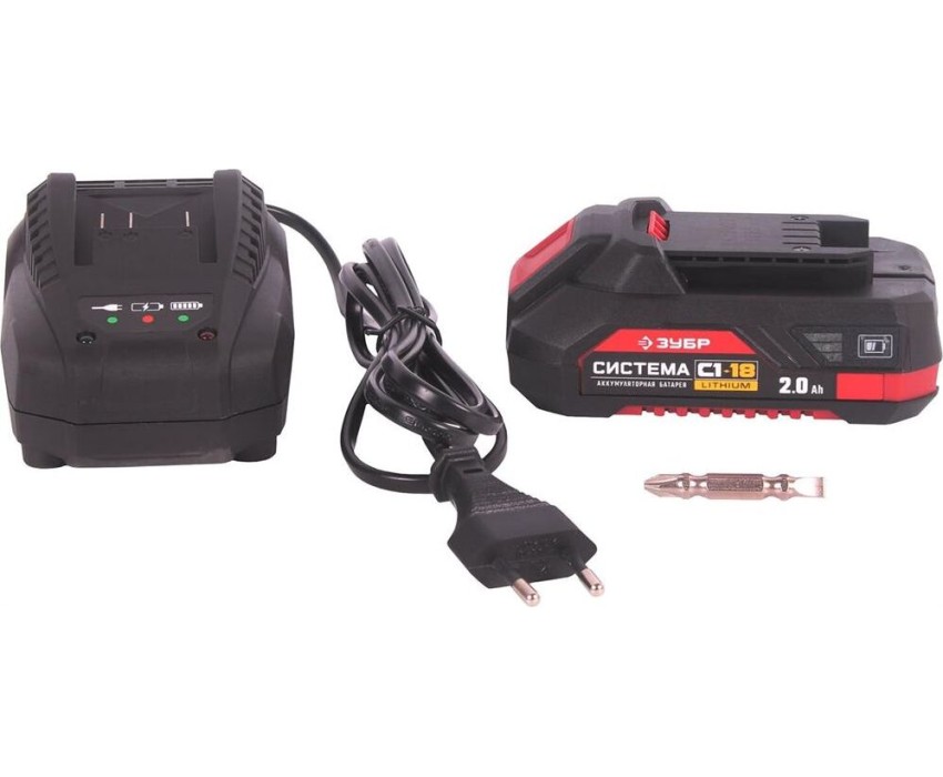 PH, бита 50 мм, быстрозарядное устройство - 1 шт, аккумулятор - 2 шт, дрель-шуруповерт - 1 шт, руководство по эксплуатации - 1 шт, скоба поясная - 1 шт, - 1 шт, PZ, кейс - 1 шт