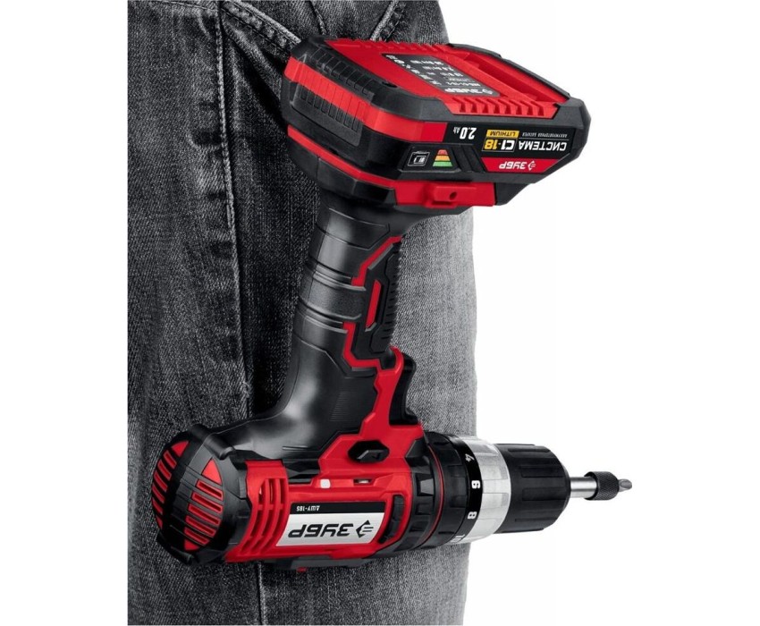 PH, Дрель-шуруповерт - 1 шт. Аккумулятор - 2 шт. Быстрозарядное устройство - 1 шт. Бита 50 мм, PZ, - 1 шт. Скоба поясная - 1 шт. Кейс - 1 шт. Руководство по эксплуатации - 1 шт.
