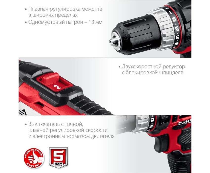 Блокировка шпинделя: есть. Время заряда, ч: 1. Габариты, мм: 280х285х115. Емкость аккумулятора, А*ч: 2. Количество аккумуляторов в комплекте: 2. Комплектация: кейс. Наличие подсветки: есть. Наличие реверса: есть. Серия: Мастер. Тип двигателя: щеточный. Тип патрона: быстрозажимной. Угловая: нет. Частота вращения шпинделя, об/мин: 0-400/0-1400. Тип аккумулятора: Li-Ion. Напряжение аккумулятора, В: 18. Max крутящий момент, Н*м: 35. Мах диаметр сверления (дерево), мм: 28. Max диаметр сверления (металл), мм: 12. Число скоростей: 2. Наличие удара: нет. Вес, кг: 1.53.