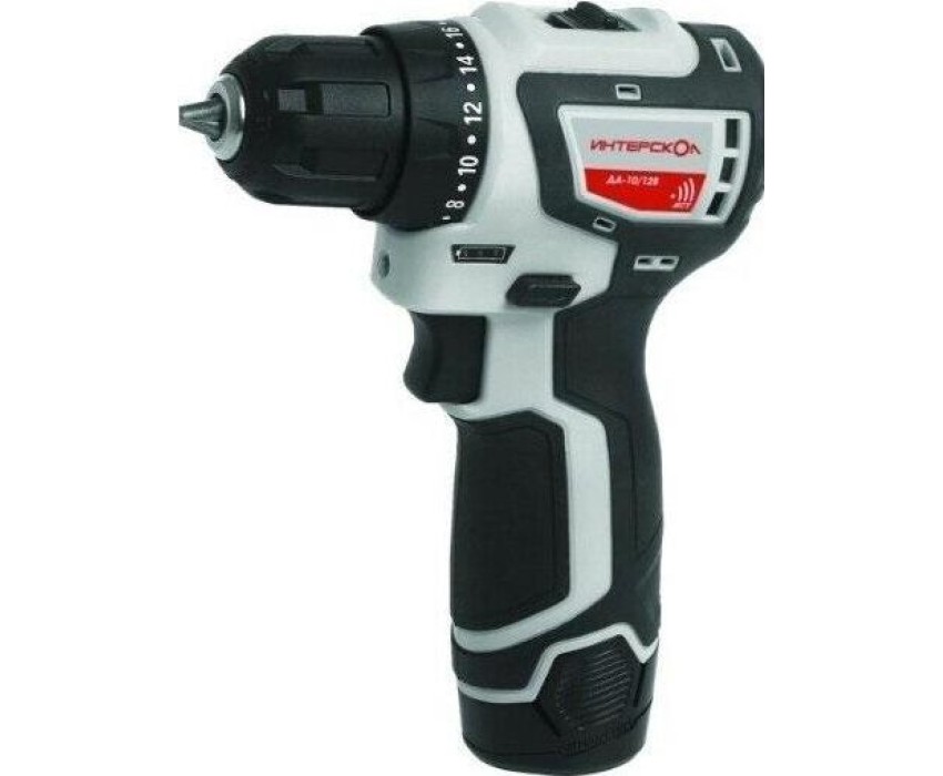 Дрель-шуруповерт ИНТЕРСКОЛ ДА-10/12В МиниМАКС бесщеточная аккумуляторная дрель-шуруповерт (Li-ion, картон, 2 аккум., 1,5Ач)