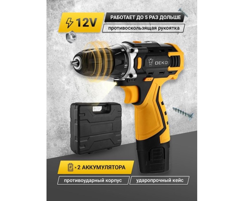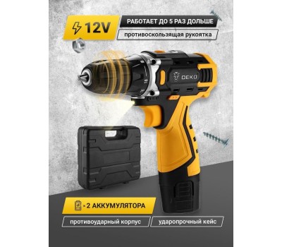 Дрель аккумуляторная DEKO Banger 12V SET 3 в кейсе, 2х2.0Ач, з/у 063-4130