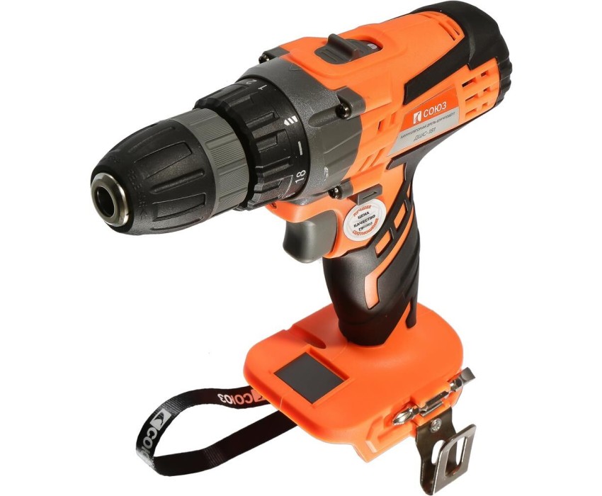Аккумуляторная дрель-шуруповерт Союз ДШС-181 — выгодная модель с простым управлением подходит для выполнения всех видов работ по беспроводном сверлении и установке крепежа. Прочный двухскоростной планетарный редуктор позволяет потребителю эффективно выполнять работы по сверлению в древесине, пластмассе и металле. Оптимальная регулировка силы крутящего момента, в 18 ступень + ступень сверления, позволяет устанавливать любой крепеж без его повреждения и вдавливания в материал. Компактный быстрозажимной патрон улучшает доступ в ограниченном пространстве, а широкая муфта патрона позволяет прочно закреплять оснастку. Благодаря универсальному патрону диаметром 10 мм модель подходит для основных видов работ по закручиванию шурупов и сверлению. Встроенная светодиодная подсветка эффективно освещает рабочую область направленным симметричным лучом. Корпус с улучшенной защитой от пыли и влаги выполнен из ударопрочного нейлона с резиновыми антивибрационными вставками. Эргономичная рукоятка с мя