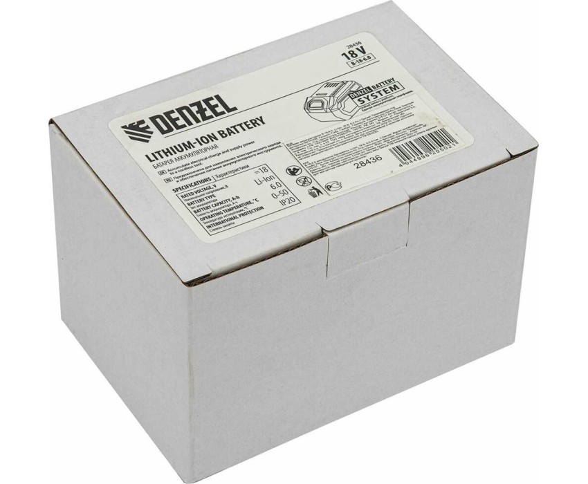 Батарея DENZEL Батарея аккумуляторная B-18-6.0, Li-Ion, 18 В, 6,0 Ач 28436
